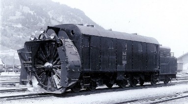 Die heute der Dampfbahn Furka Bergstrecke (DFB) gehörende, seit über 40 Jahren nicht mehr eingesetzte Dampfschneeschleuder Xrotd R 12!