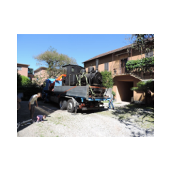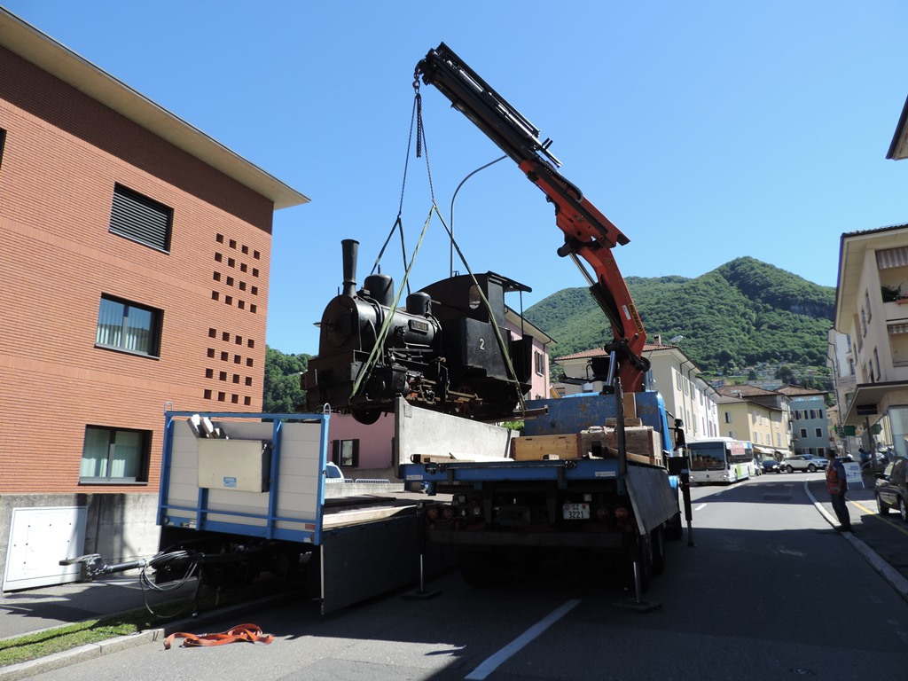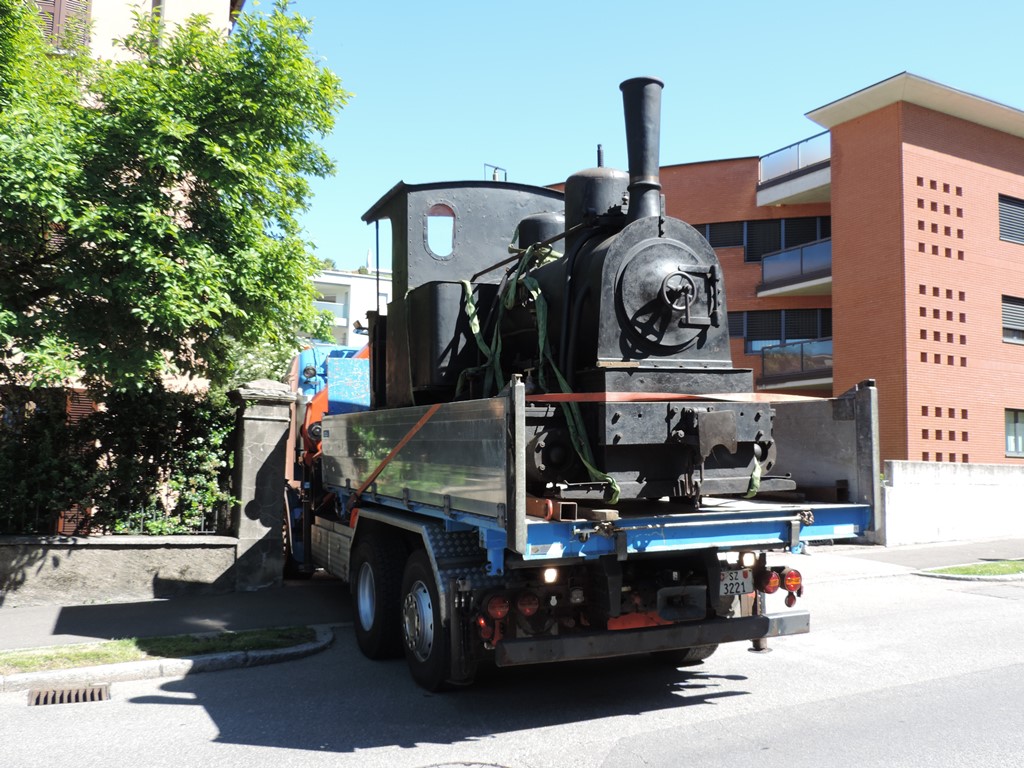 Gemäss der Frau sah Guido Travaini die Lok schon länger in der Magadinoebene stehen und interessierte sich für sie und man brachte ihm die rund 6.5 To leichte Lok am 14. November 1961 zu ihm nach Hause. Da stand sie anscheinend noch rund zwei Jahre draussen, bis er eine geniale Unterkonstruktion baute und sie schön in die trockene Ecke eines Kellers versorgte.
